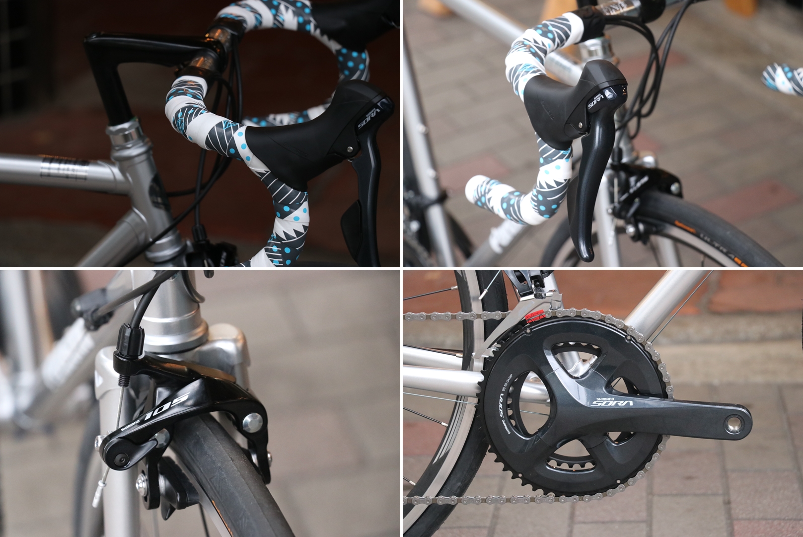今回はフレーム単体でのオーダーから、ご予算に応じてSHIMANO R7000系105コンポ&手持ちのパーツと併せて組み上げさせていただきました。