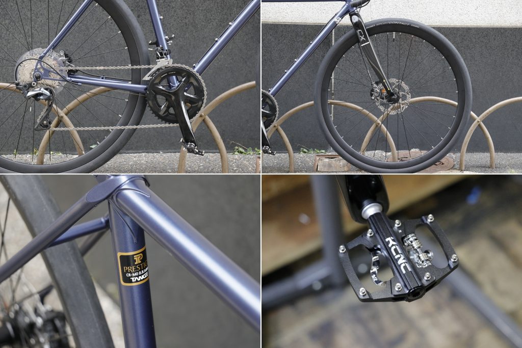 今回はSHIMANO 105完成車をベースに、26Cながらもセミブロックパターンが採用されたパナレーサーグラベルキング、ペダルにはスニーカーで気楽に乗れる名作ペダルMKS プロムナードをチョイス頂きました。