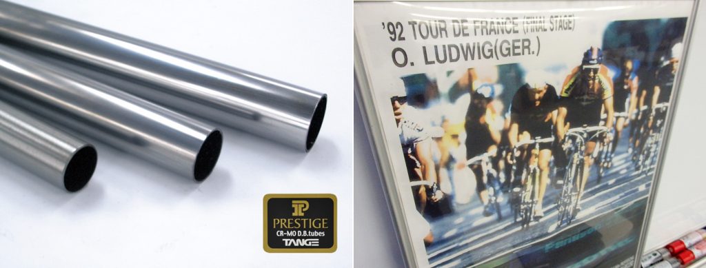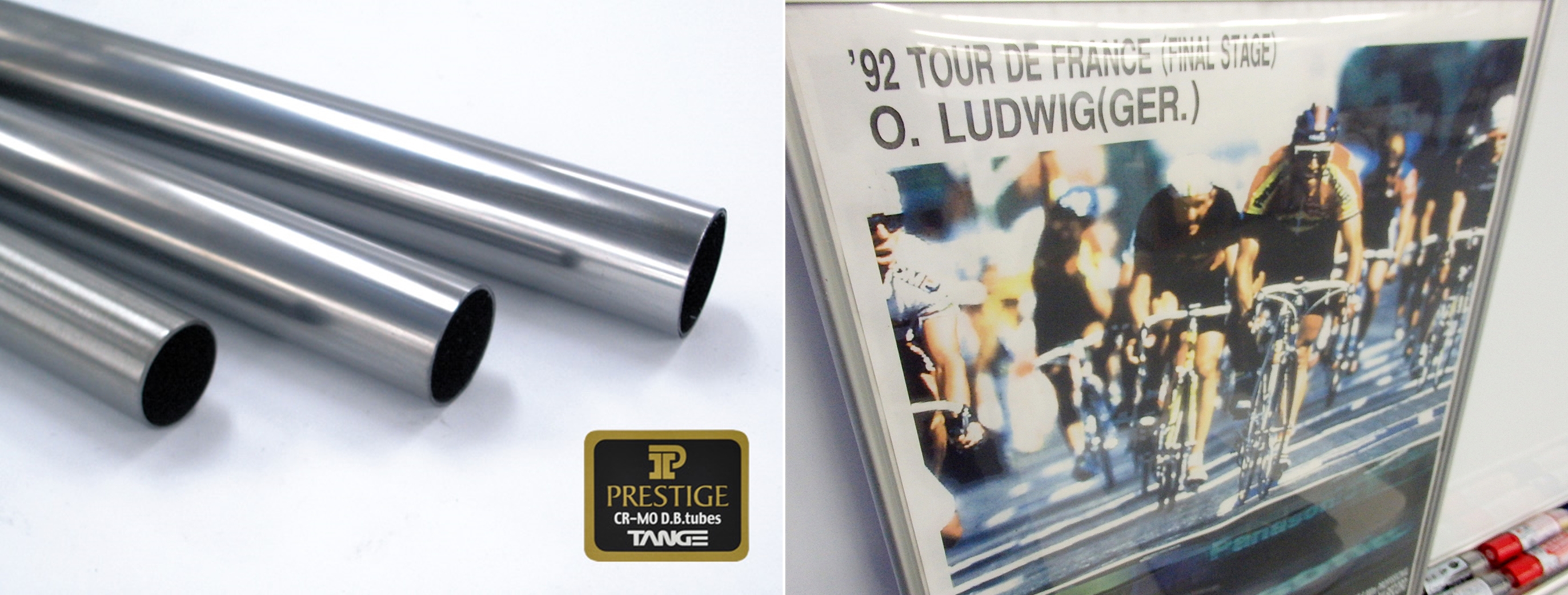 本モデルの肝となるメインチューブは、パナソニックオーダーの十八番ともいえる90年代のロードレースを席巻した「TANGE PRESTIGE」。