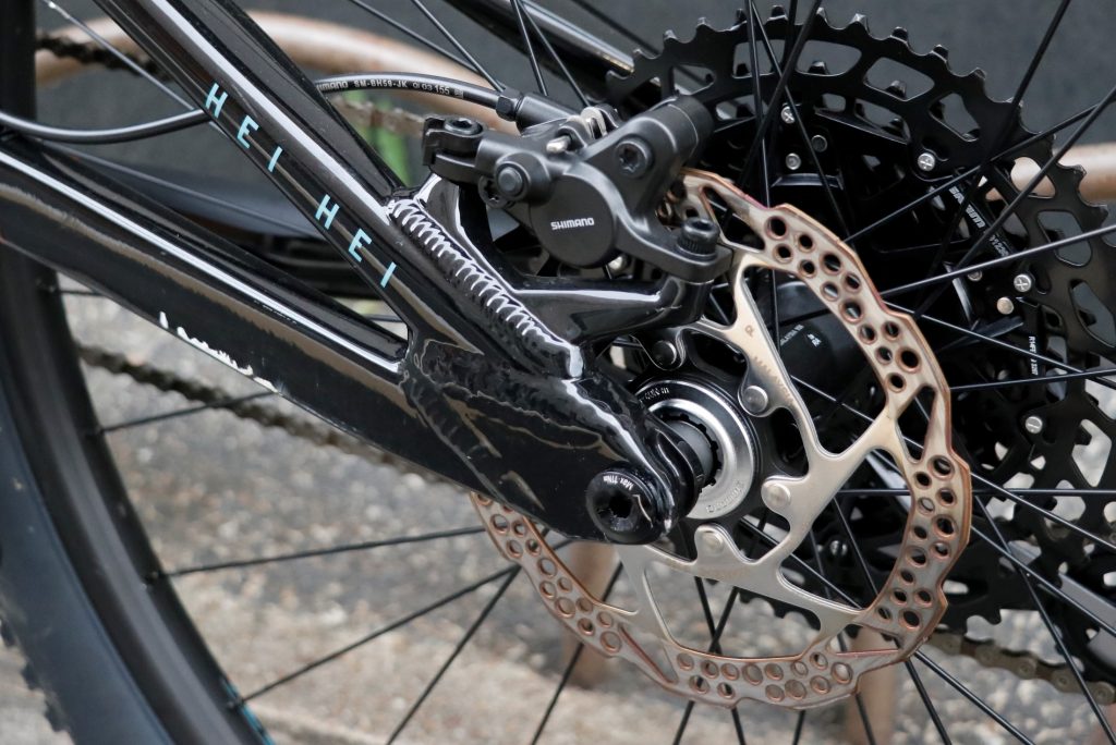 HEI HEIのリアサスペンションには100mmストロークのエアサスが採用されており、
