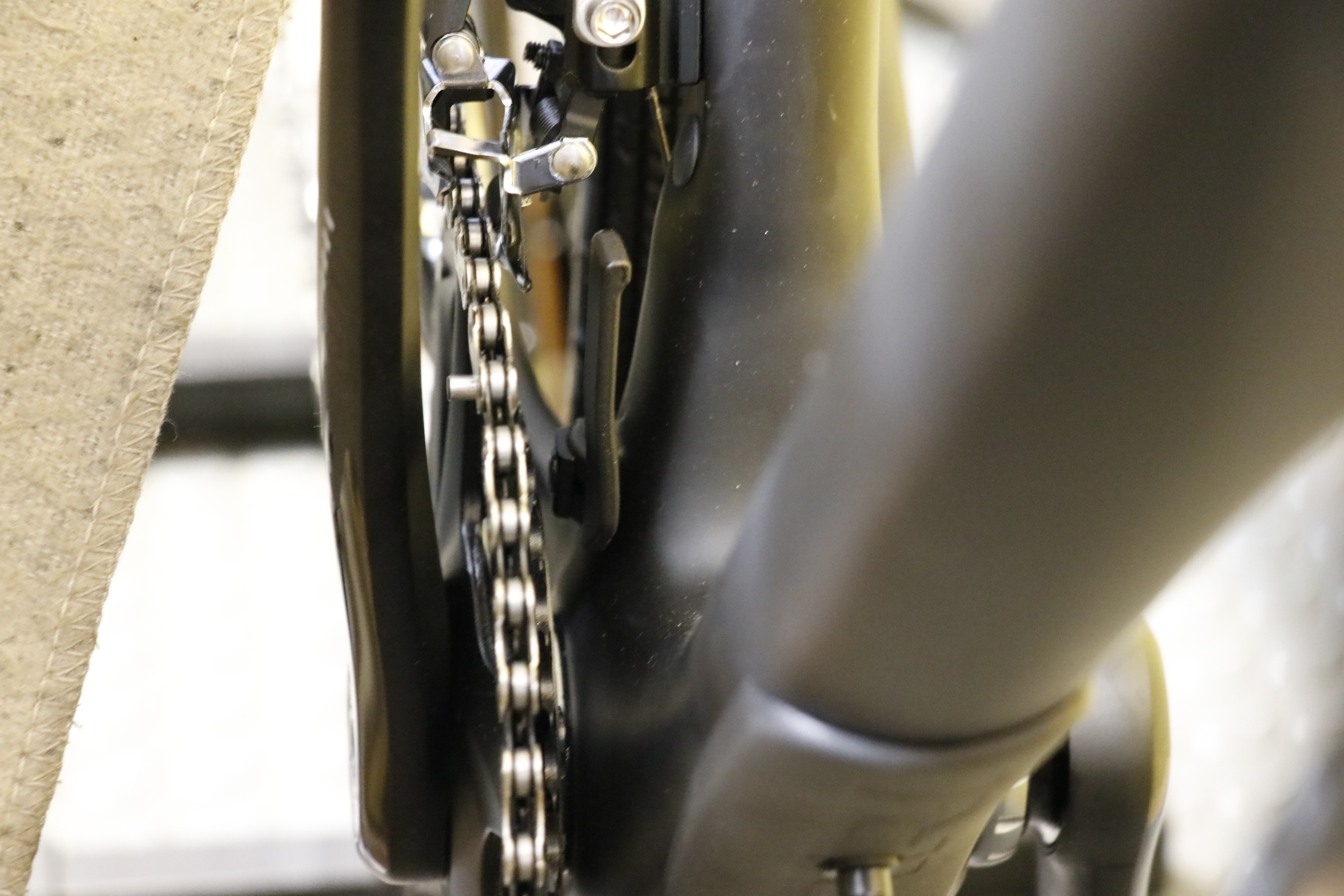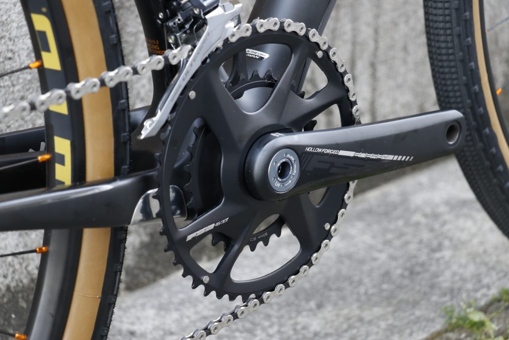 クランクセットにはFSAのマイクロコンパクトクランク(46-30T)を採用し、大量積載やグラベルの急登に対応しています。