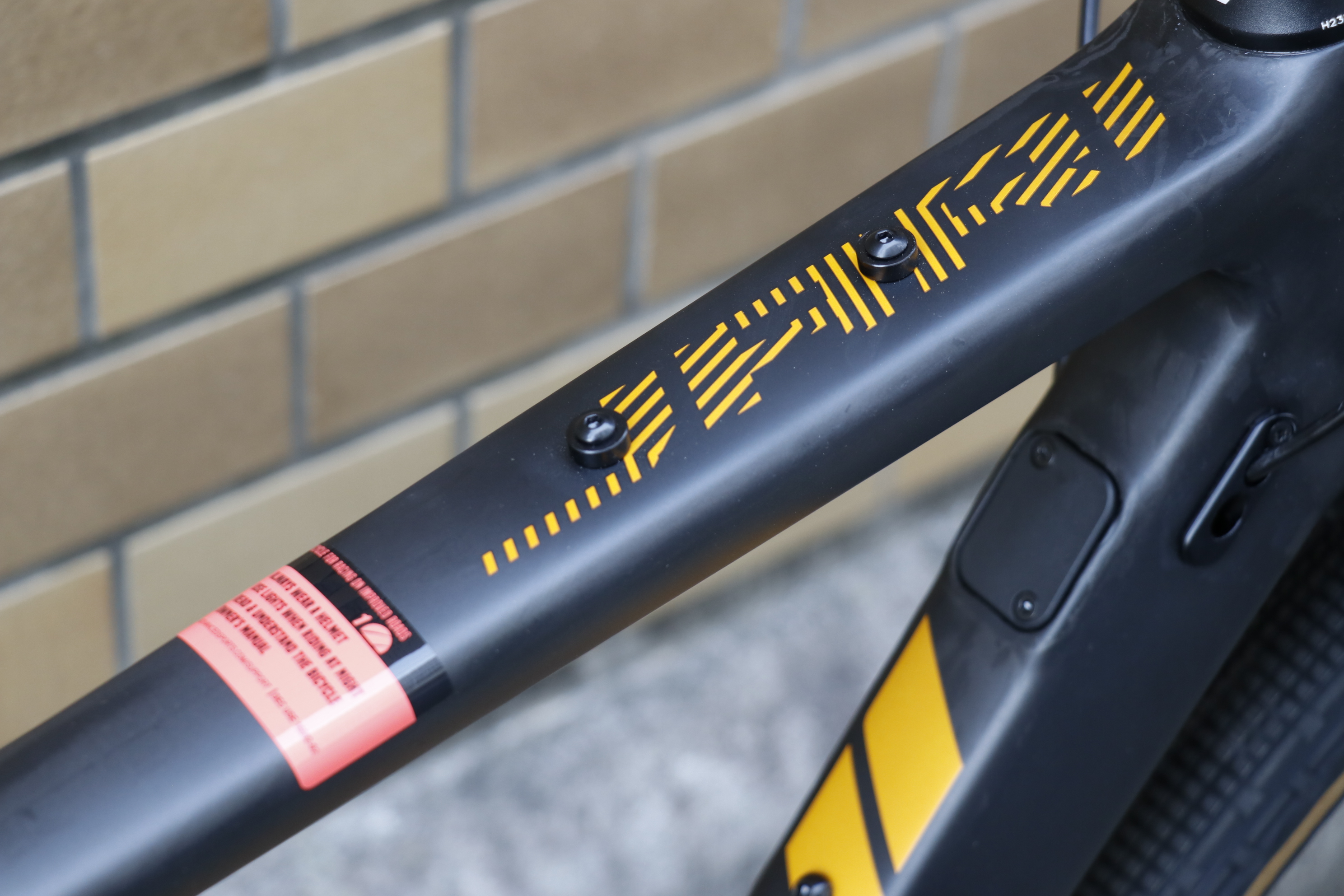 グラベルバイクでは定番のダウンチューブ裏ボトルケージ台座。位置が低いので、重量のあるツールケースの積載に最適です。
