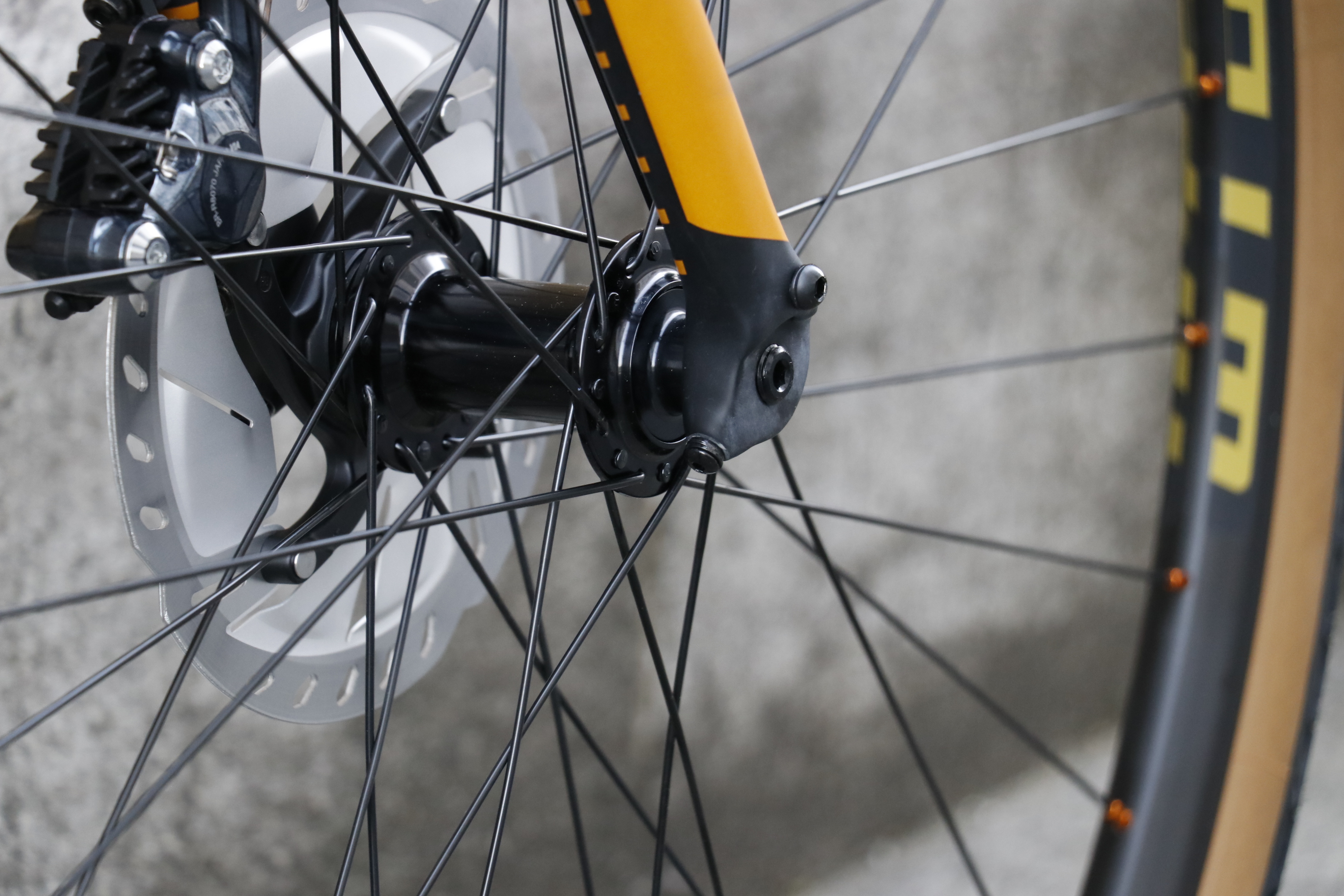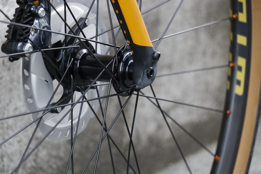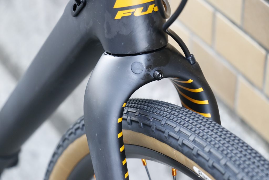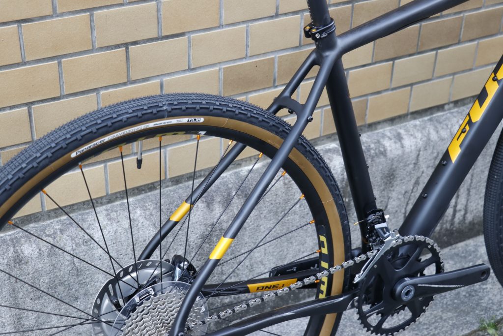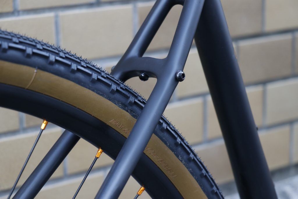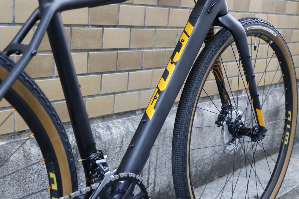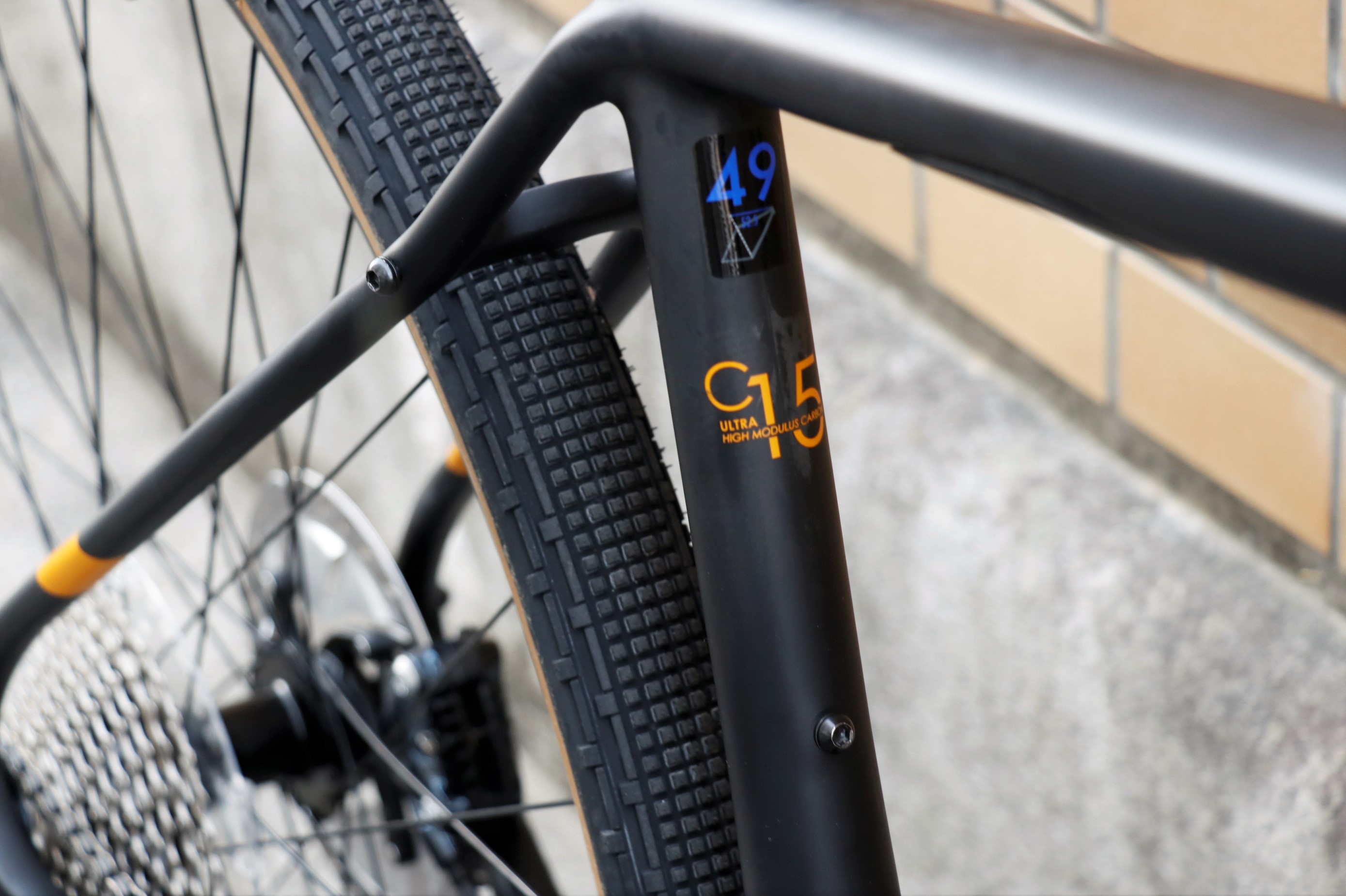 最初から43cと太めのタイヤをセッティングしているのも軽量で軽快なフレームあってこそ。