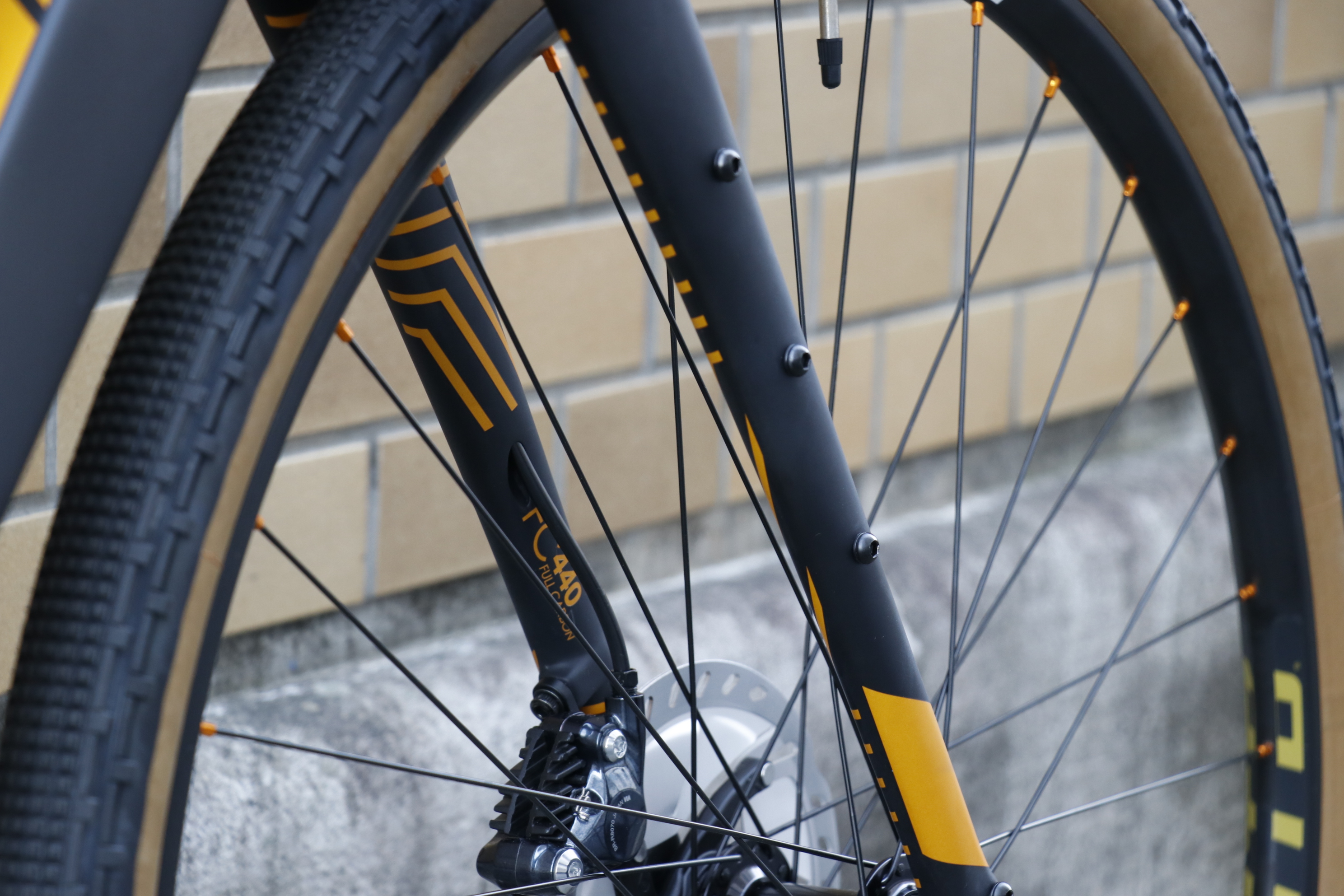 フロントフォークには強度重視のC10 Carbonを採用したFC-440 Cross carbon monocoqueを採用。
