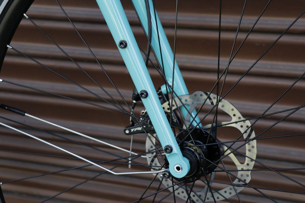 前後ともにディスクブレーキ(フラットマウント規格)が採用され、また常にホイールの装着位置を一定に保つ事が出来る12mmスルーアクスル規格が前後共に採用(車輪の付け外しを伴う輪行の際にも嬉しいポイントですね)。