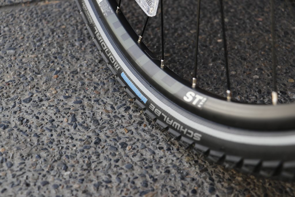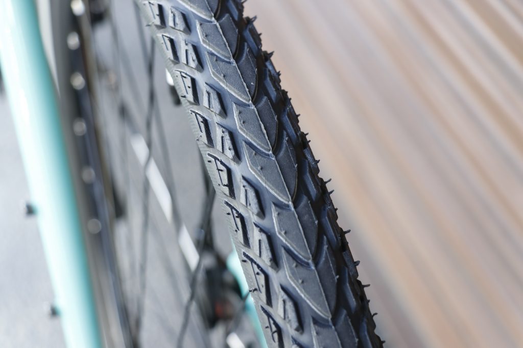 何と、高い耐パンク性&耐摩耗性、ある種自転車泣かせ(修理に持ってきてくれない笑)なほど強靭な「シュワルベ マラソン モンディアル」が標準採用。