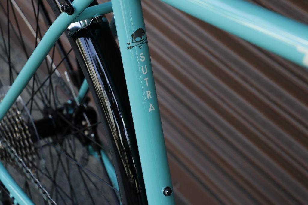 シンプル&直線的なフォルム、スタイリッシュな佇まいのスートラは、人気モデル「ROVE」や「SUTRA LTD」の親とも言えるKONAの超ロングセラー/ツーリングモデル。