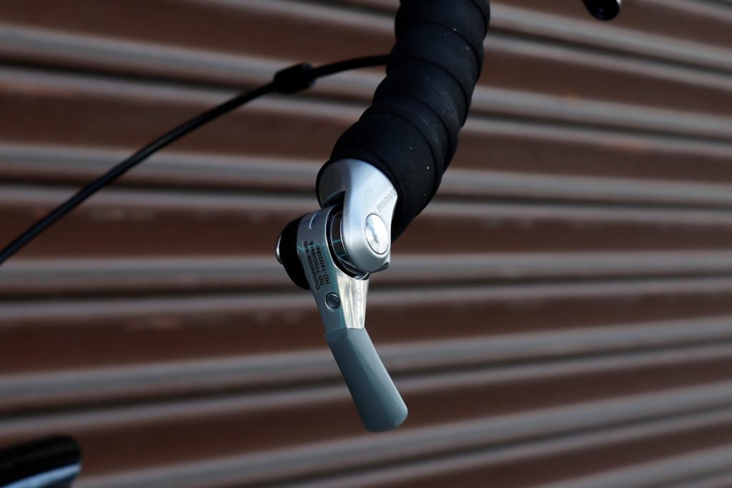 手元変速のSTIレバーよりもシンプルな構造で故障も起きにくく操作もシンプルでややこしくない。そして、その武骨な佇まいがカッコイイんですよね!