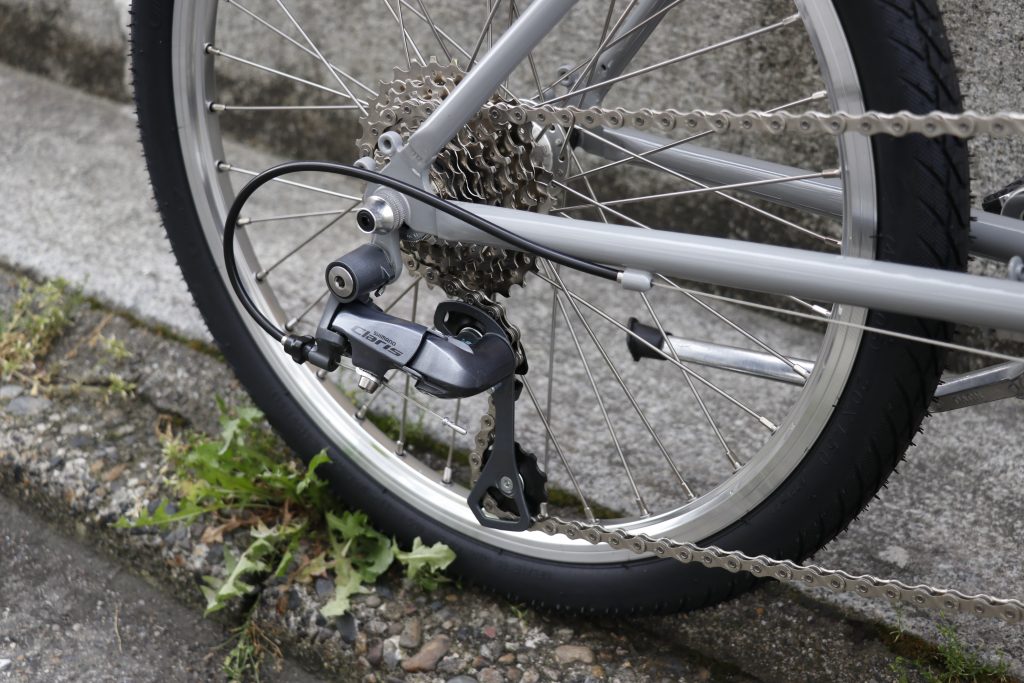 変速は後8段。SHIMANOのクラリスの変速機が採用。街乗り+@では充分な仕様ですね。