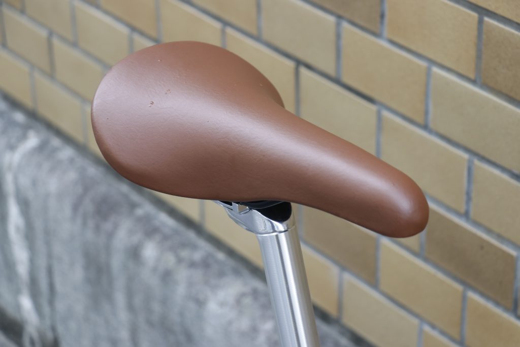 サドルはナイロントップのブラウンカラー。BROOKS製のサドルへカスタムしてみても良いですね!