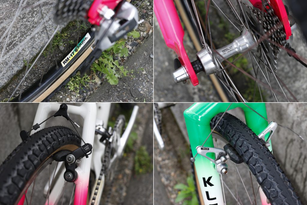 勿論パーツのアッセンブルバランス等は 個人の趣味嗜好を優先(サドルやグリップは当時のオリジナルで!など)されて宜しいかと思いますが、ブラウンを基調とした現行パーツチョイスにより、グリーンとピンクといったこの当時ならではのケミカルな雰囲気をバランスよく抑えた完成車になっているかと思います。