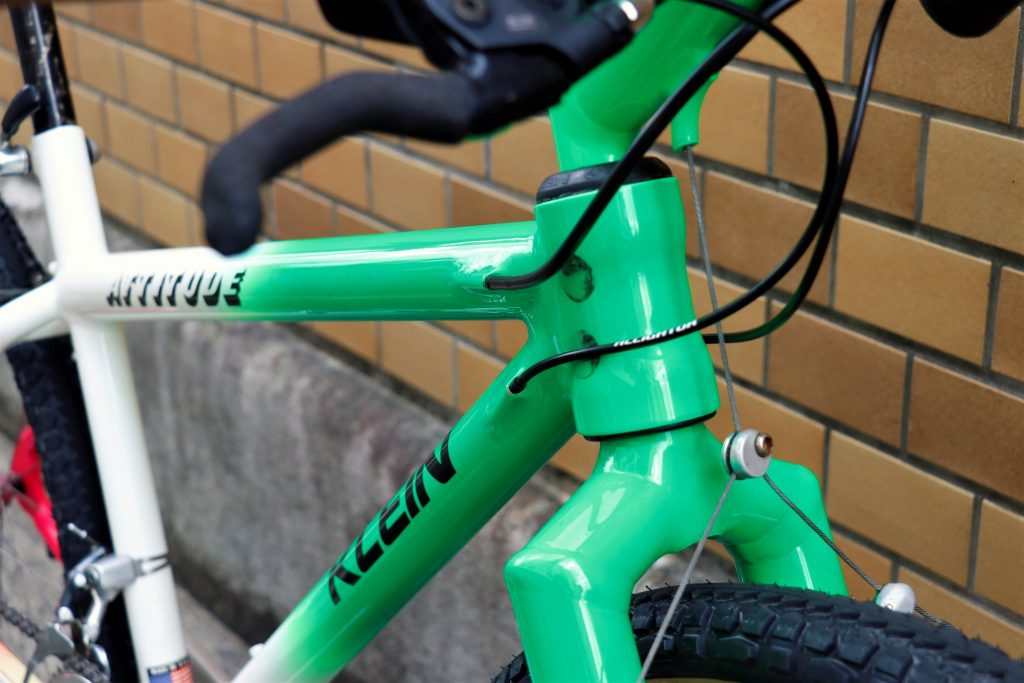 本車体はおそらくそれ以前、デカールのデザインから想定するに1990年時のMTBモデル「アティテュード」。
