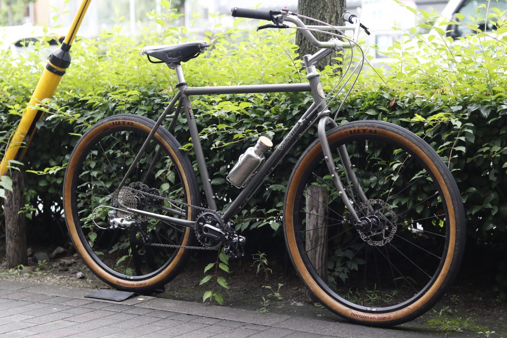 マックスタイヤクリアランス27.5×2.3インチであるE.B.SのVOKKAをベースとして、フォークサイドやダウンチューブ裏などにアイレットを拡充したGROWNオリジナルモデル(KAISEI 022仕様)。