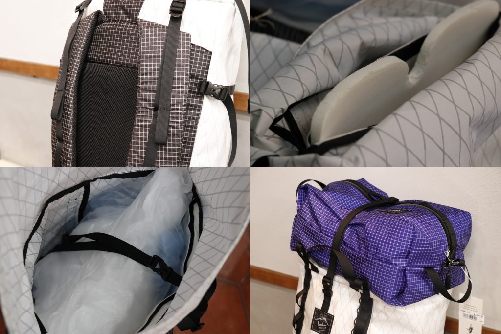 摩擦頻度の高いハーネス部分にははノーマル同様割けに強いスペクトラ Grid 210Dを使用。スレが多く水に濡れる頻度の高いボトムとロールトップ部分にはメイン同様軽量で強く、また防水性の高いX-PACを使用しています。