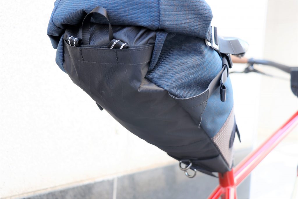 後輪から巻き上がって来る「水」や「小石」などから中の荷物を守るべく、底面にはより撥水に強いX-PACを使用。