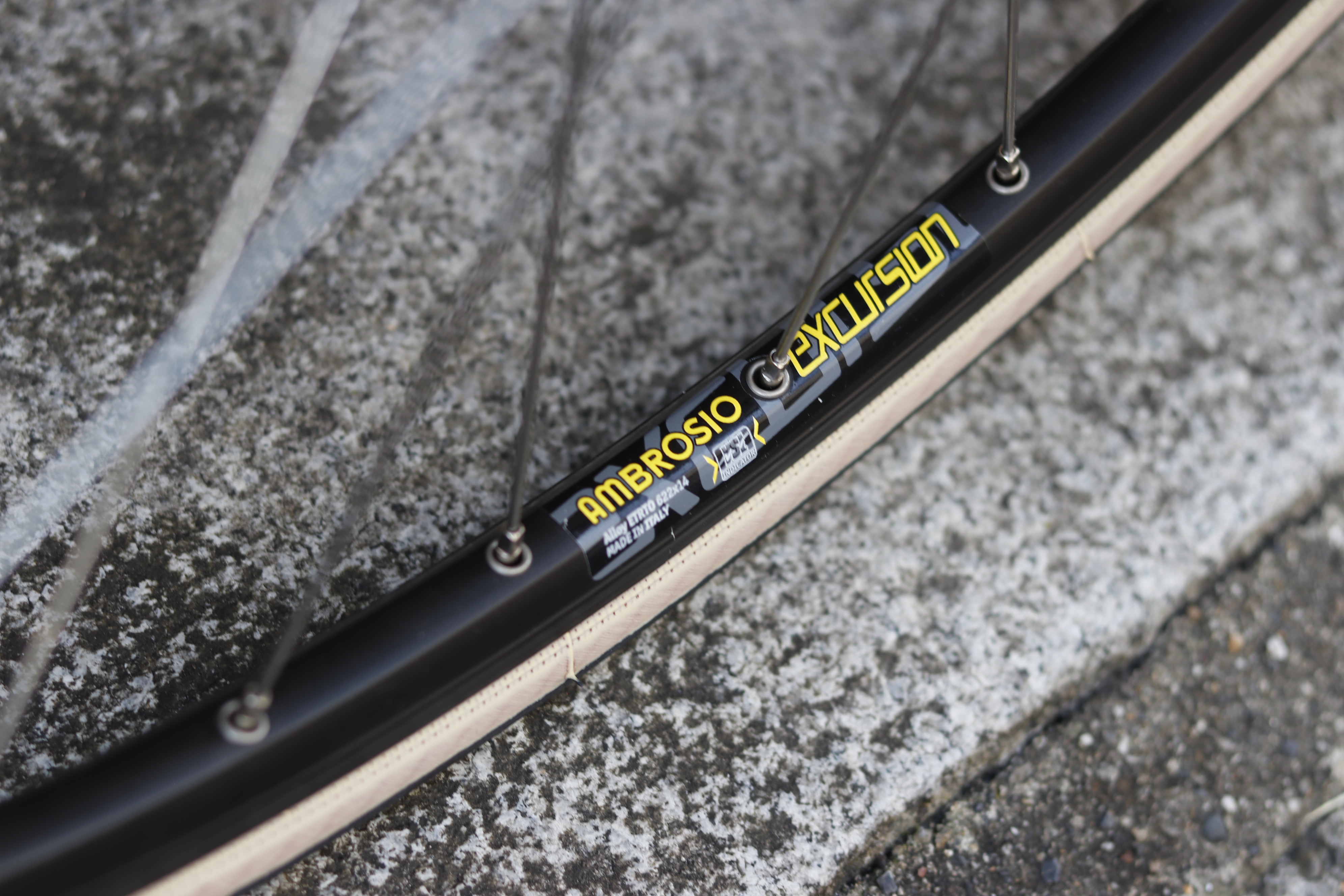 リムはクリンチャー(W・O)に変更済み。イタリアンブランド「アンブロッシオ」のエクスカージョン。
