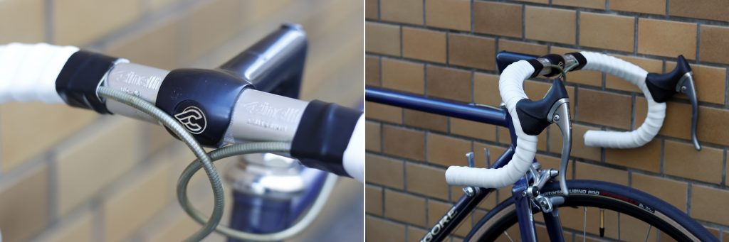 トラックハンドルにも似たなで肩のクリテリウム形状は、この当時のクロモリロードに実に良く似合いますね。