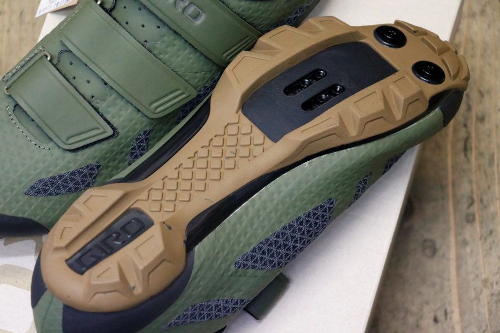 シクロクロスでも役立つグリップ力期待できそうなトレッドパターンに加え、土踏まず部分にも■型のパターンを採用。ダートライドにおけるGIROの妥協なさが伺えます。