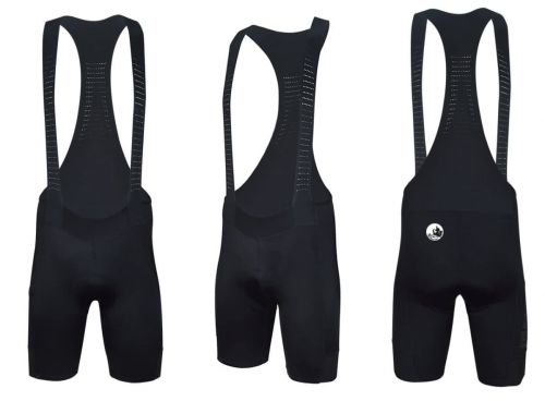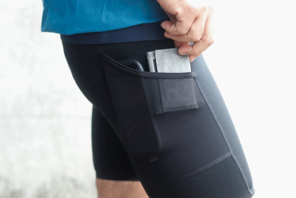 両サイドにメッシュポケットが配置されたビブショーツ。