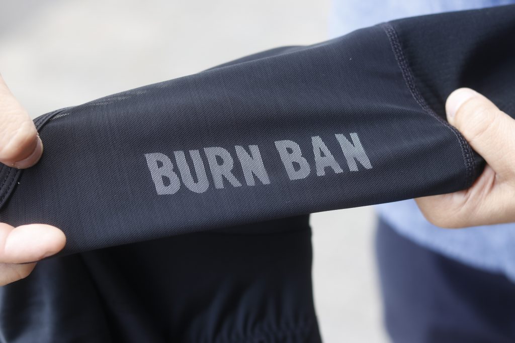 右側腿のメッシュ下にはBURN BANロゴをリフレクター素材でプリント。