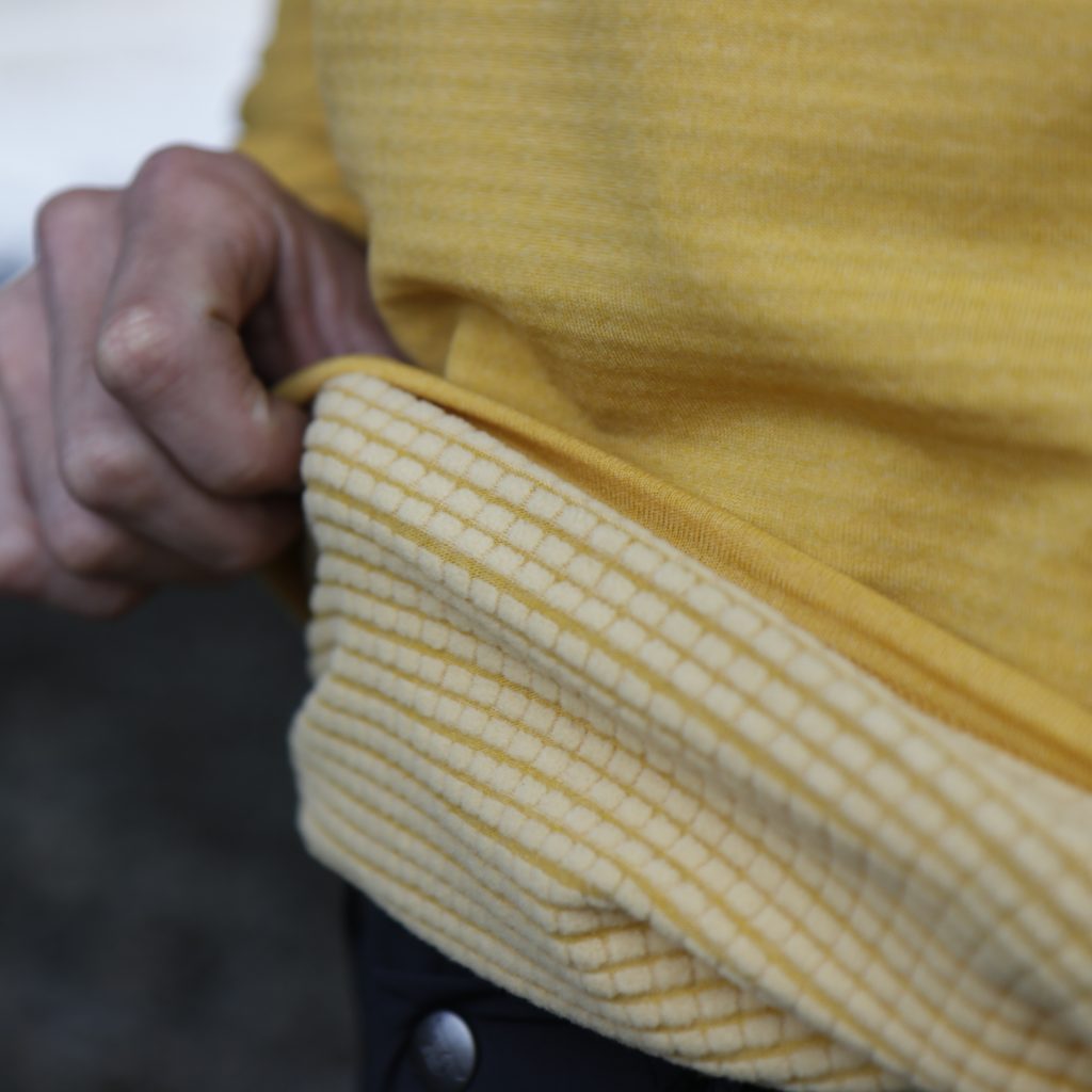 Polartec®PowerGrid(38%リサイクル)は、高い通気性と水分を急速に吸い上げるグリット構造によって、常にドライな状態をキープします。