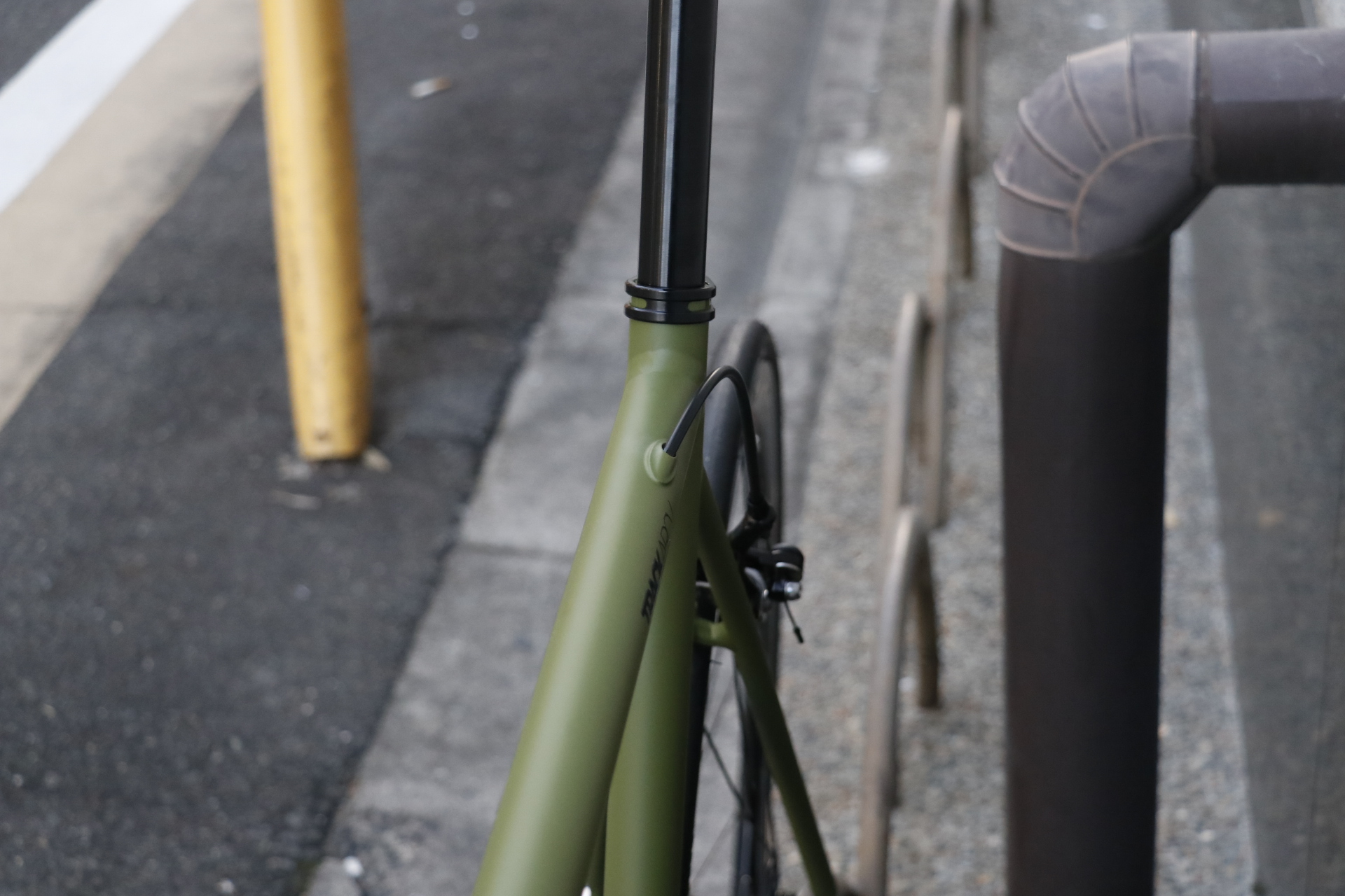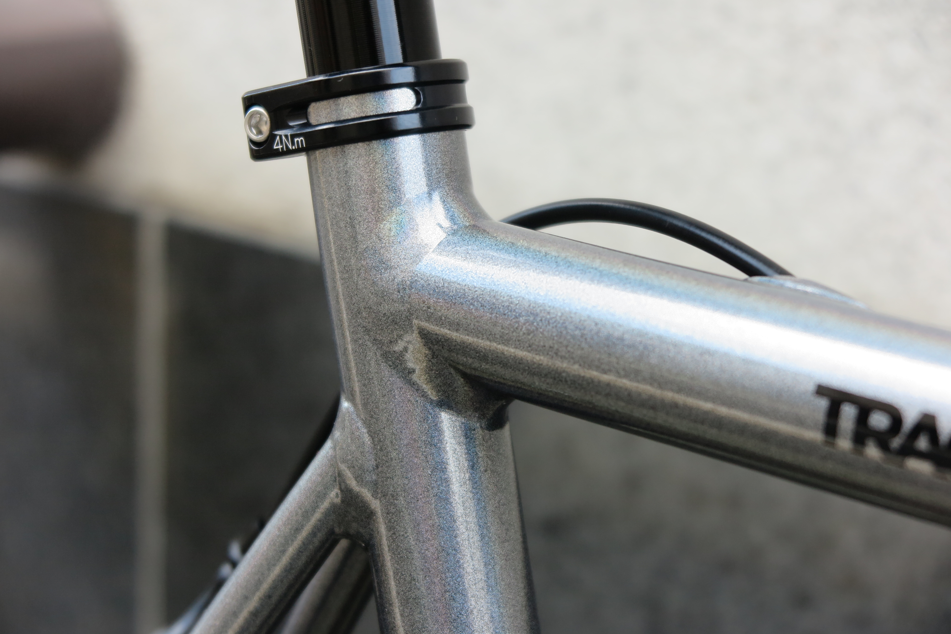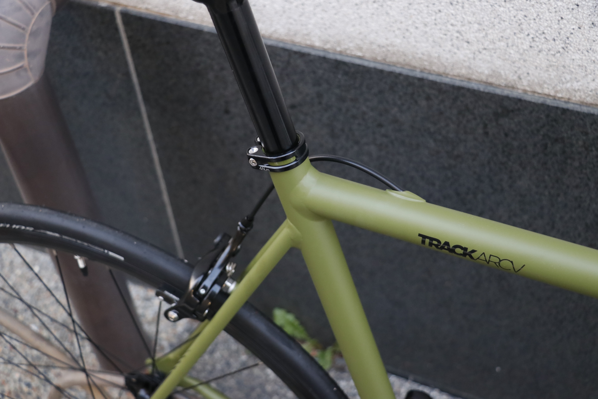 スッキリとシンプルな外観を損なわない様、リアブレーキケーブルはトップチューブ内装仕様となっています。