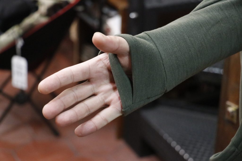 袖のリブには冷気の侵入を防ぐサムホールも付属し高い防寒性能を用意。