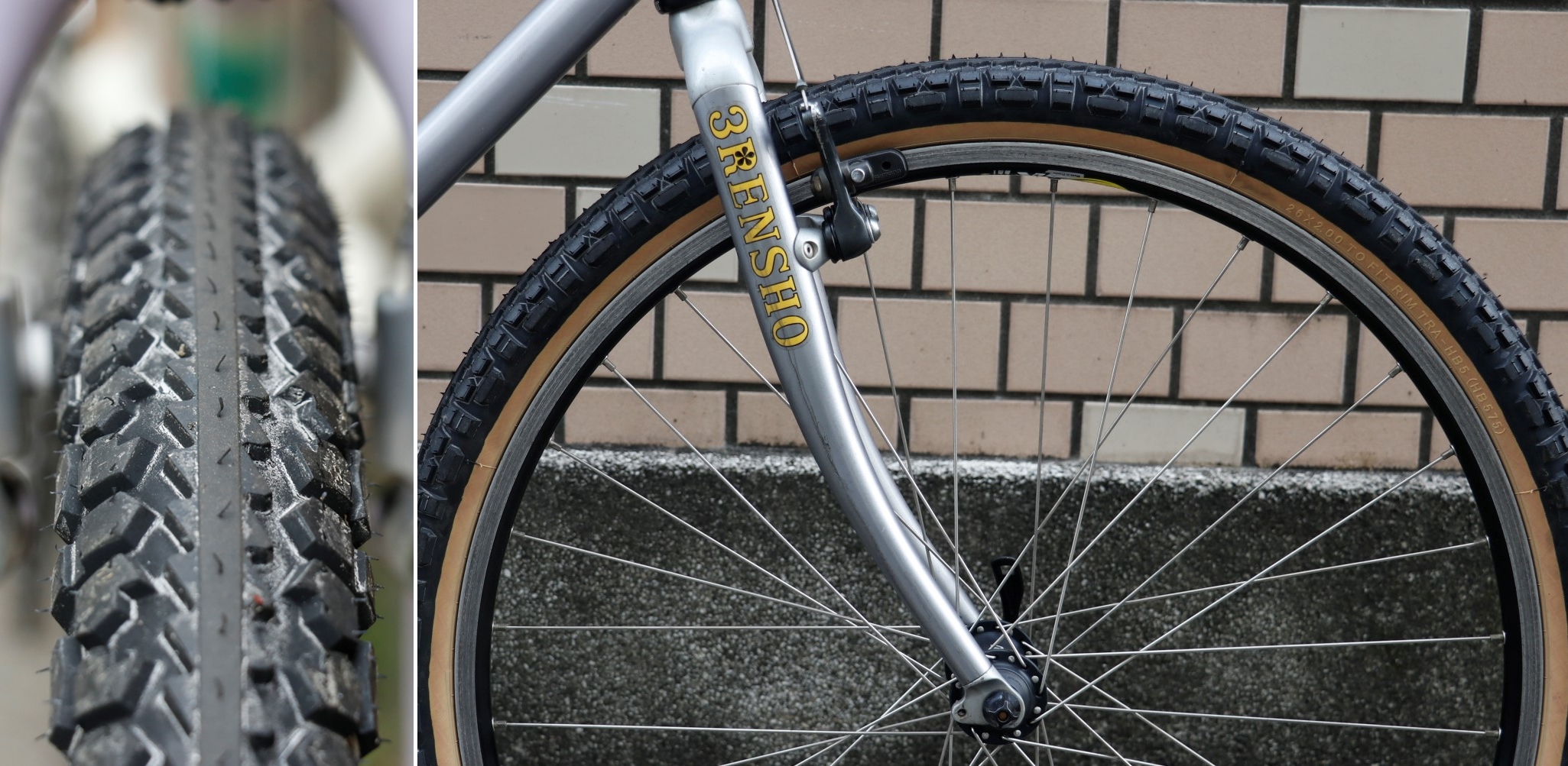キャンピングなどの重装備ツーリングにも適した2.0インチ幅。センタートレッドは連なったパターンで、アスファルトでもさほど抵抗を感じさせません。
