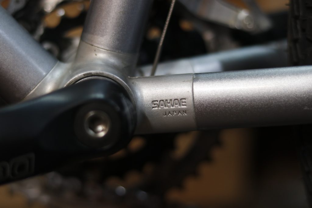 因みに本MTBモデルは、競輪で有名なハンドメイドクロモリフレームではなく、生産を今は無き栄輪業が請け負ったSAKAEアルミラグを採用したモデル。