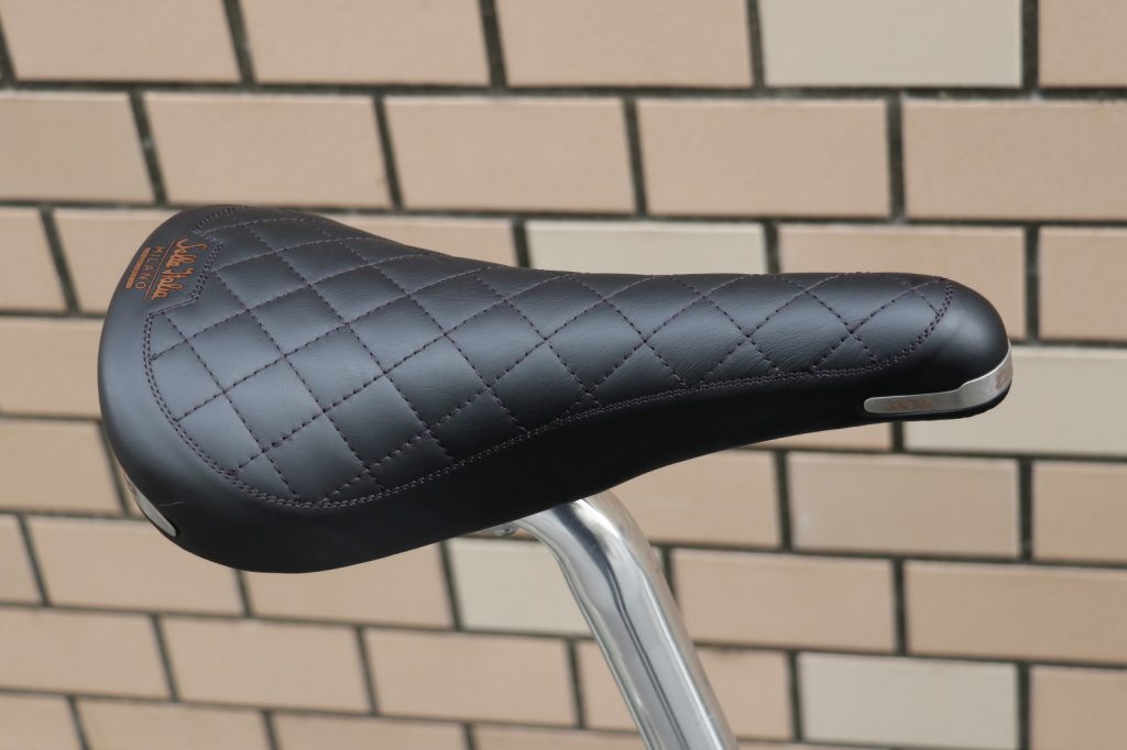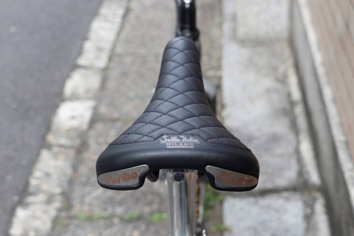 サドルには、80年代を代表するレーシングサドルTurboをオートバイの様なステッチいりブラックレザーで仕上げたモデル【SellaItalia / セライタリア】TURBO Bonnie Milano武骨な雰囲気に◎