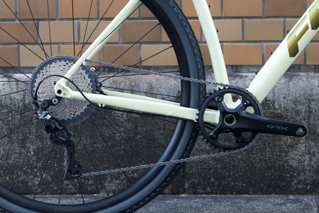 シマノのグラベルコンポーネント GRX フロントシングルという間違いないチョイス。