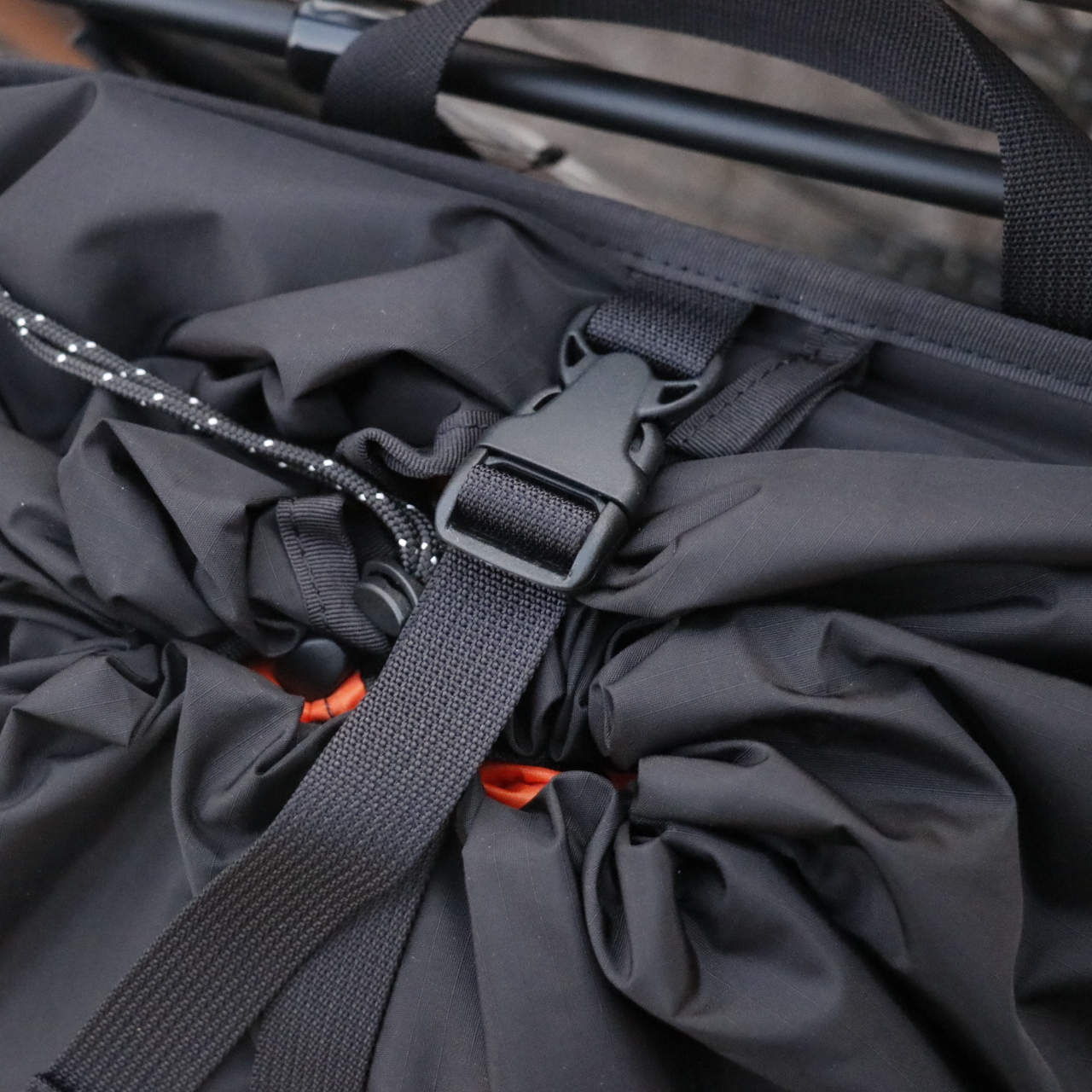 上部は「あとちょっと」を飲み込んでくれる巾着タイプなので、荷物がちょっと溢れちゃっても大丈夫。