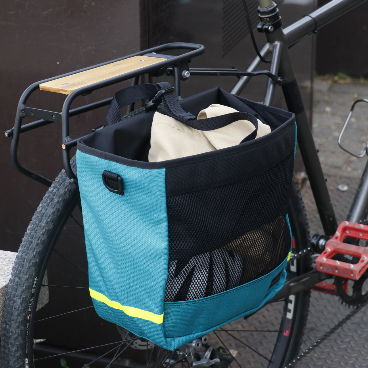 パニアバッグといっても、日本一周に出かけるようなものではなく、ママチャリの前かごの様にデイリーに使いやすいカゴ型パニアです。