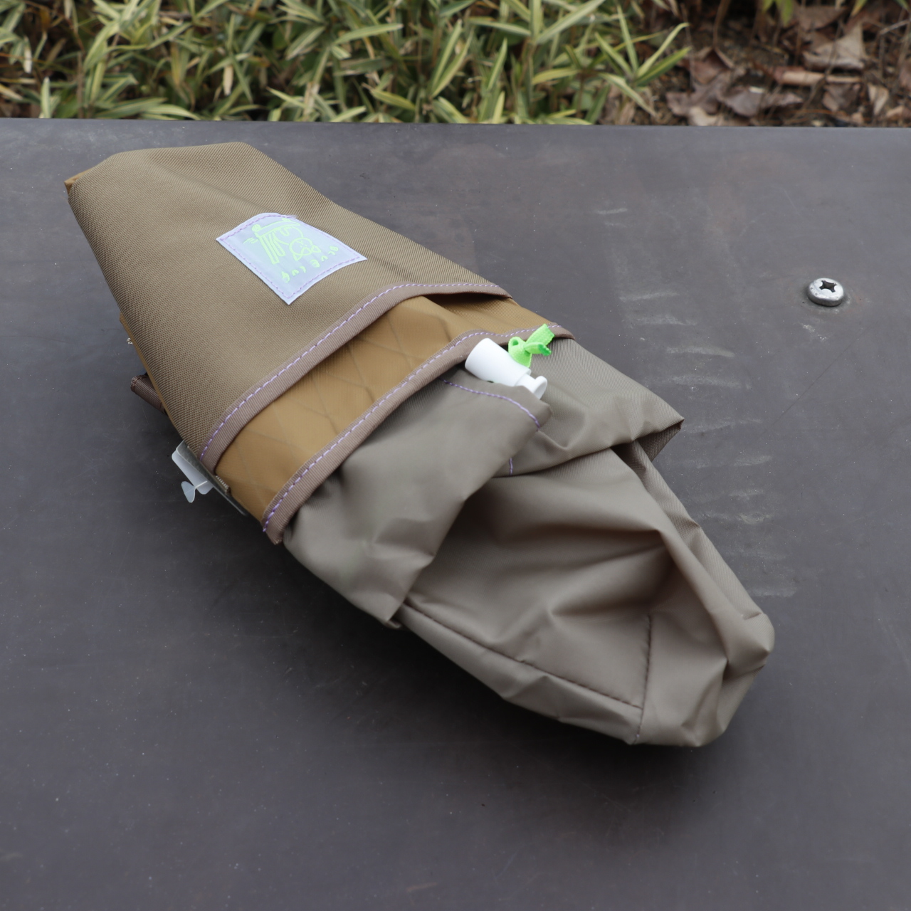 通常のステムポーチは、サイクリングボトルサイズのものが多いですが、本商品は水場の無いアドベンチャーサイクリングをする際にも心強い一回り大きめのナルゲン1リットルサイズOK。