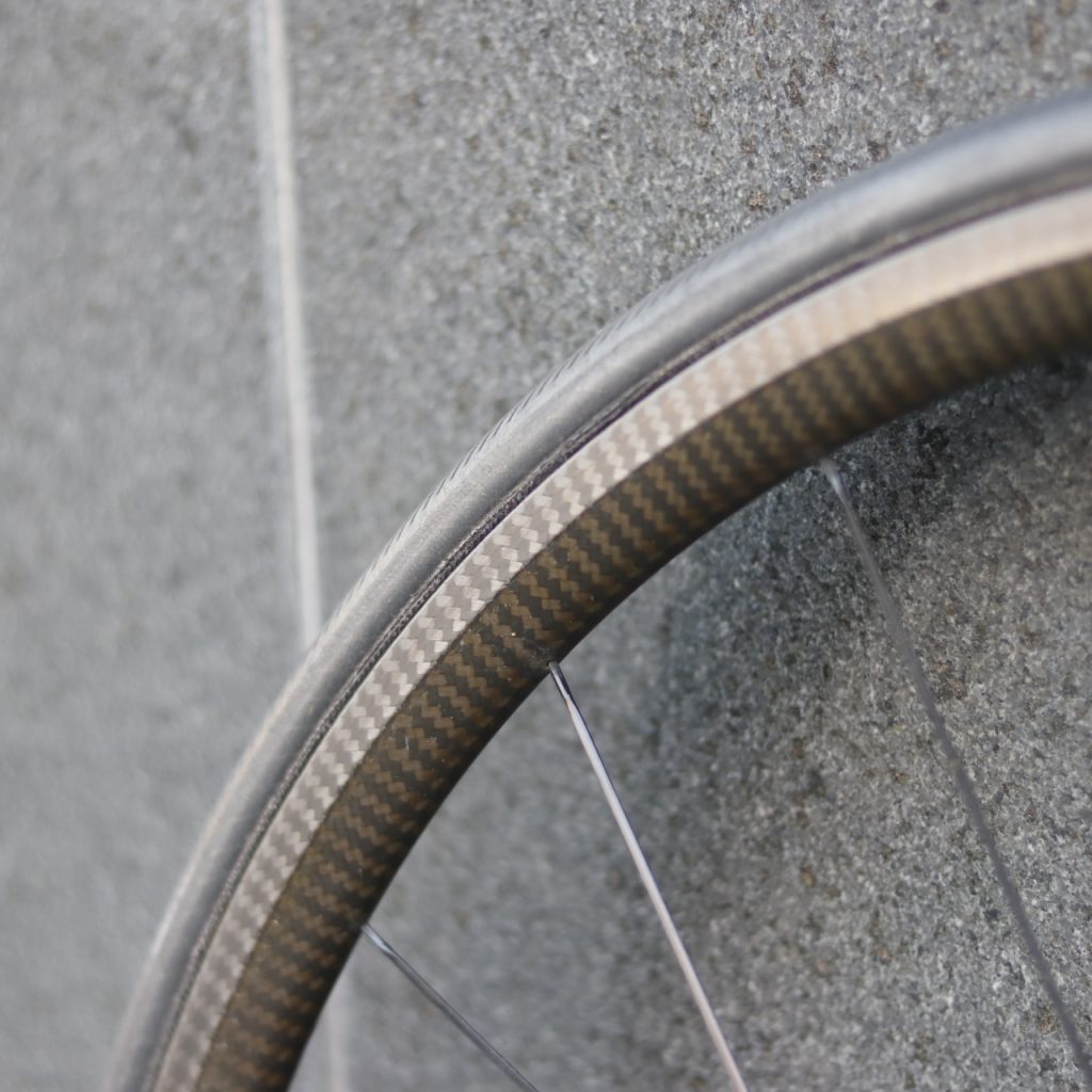 ニップル内蔵式、23mmハイトのカーボンリム。