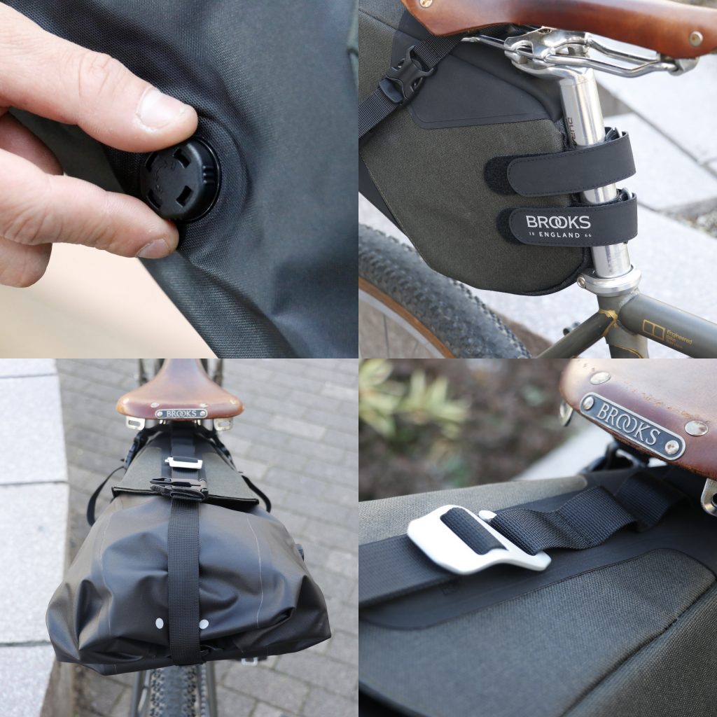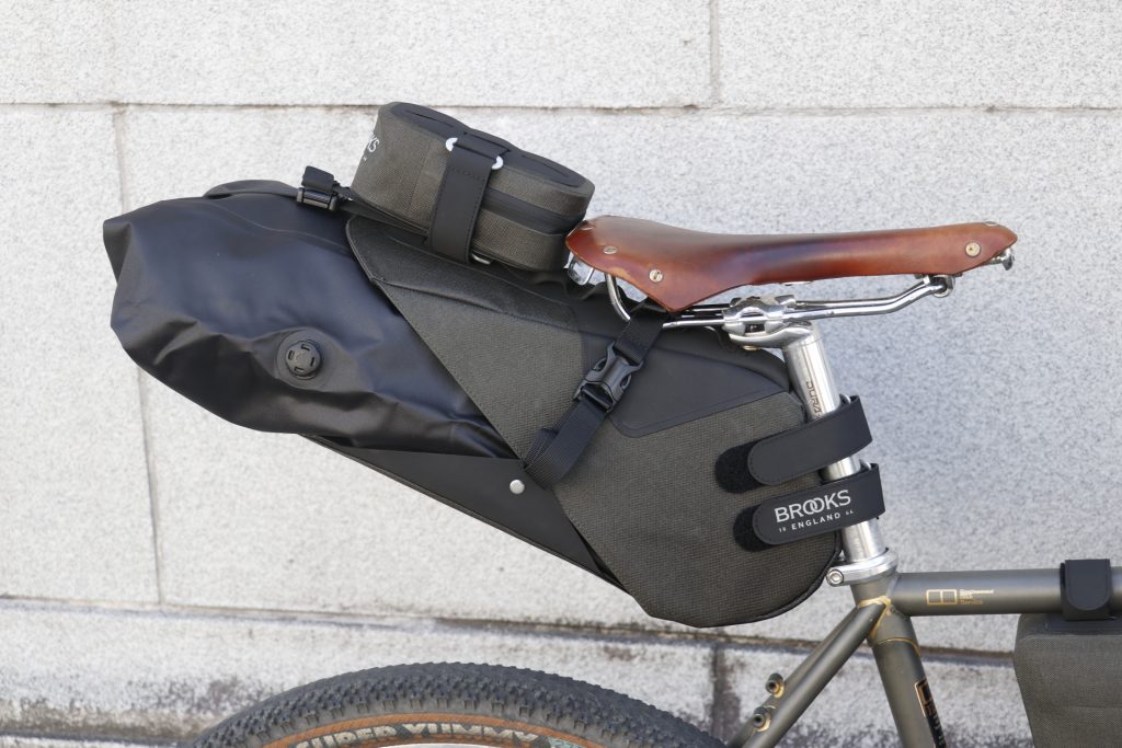 他社バイクパッキングアイテムの殆どがスポーティなルックスであるのに対し、高級感&味のある雰囲気と高い実用性を併せ持つこのアイテム完成度は、まさしく伝統性と革新性を併せ持つブランド「BROOKS / ブルックス」然としたもの。
