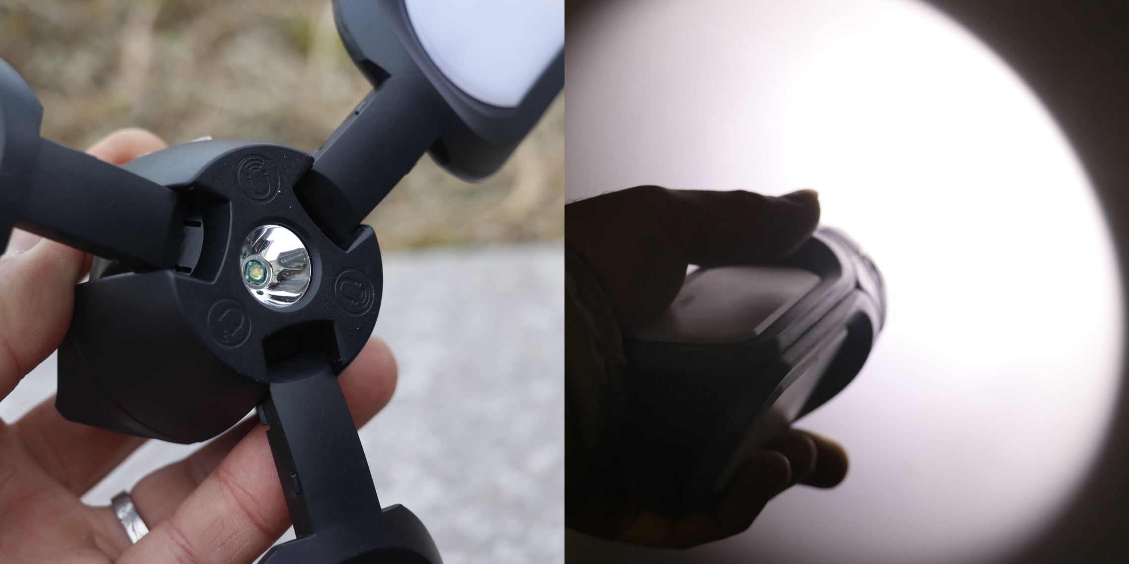 メインとなる3枚のLEDパネル以外にも本体中央にはセンターライトが配備されているので、懐中電灯のように持って使うことも可能です。