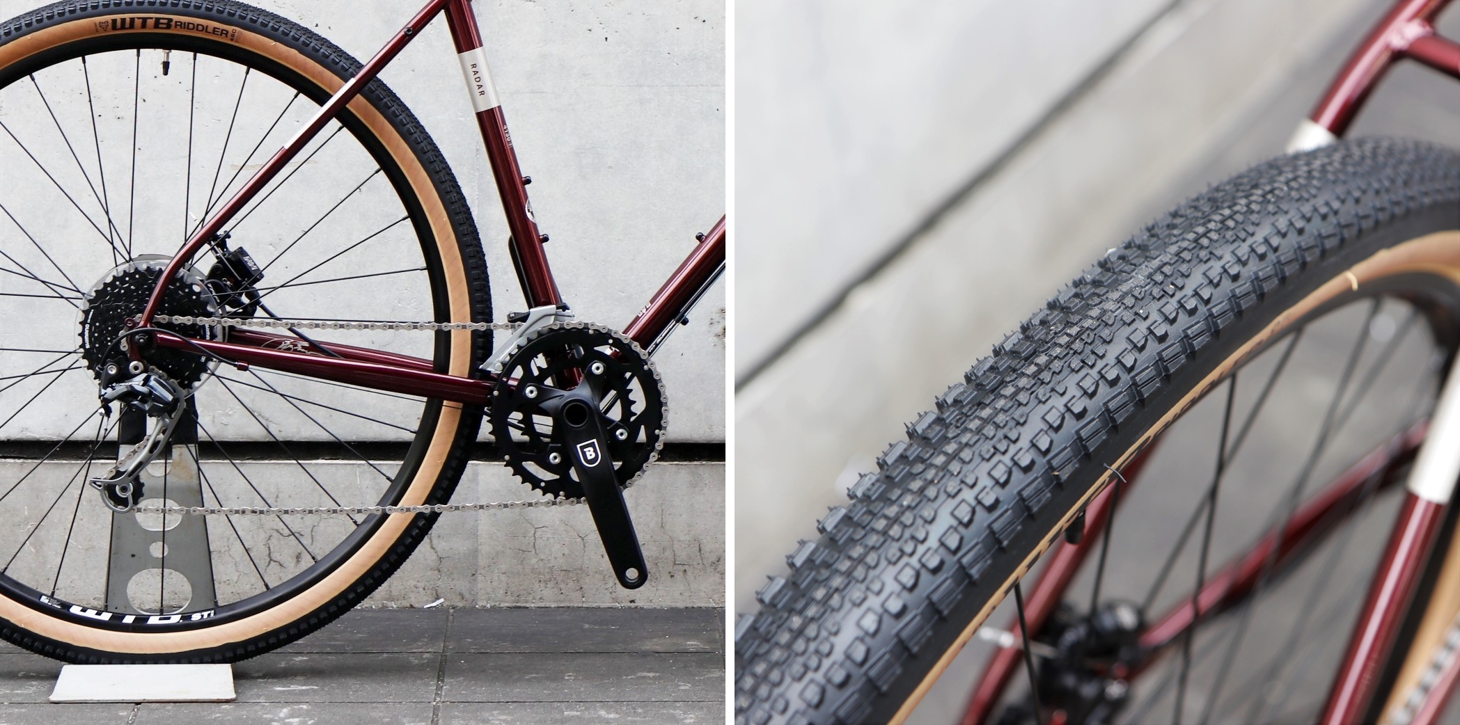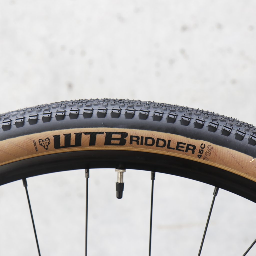 タイヤ:WTB Riddler 700 x 45c /低いノブパターンによりオンロードとグラベルをバランス良くこなすアドベンチャータイヤの代表格。