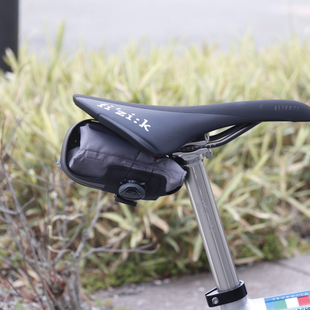 何でも入るサドルバッグというよりは、ツールに特化したミニマムなスタイルが◎