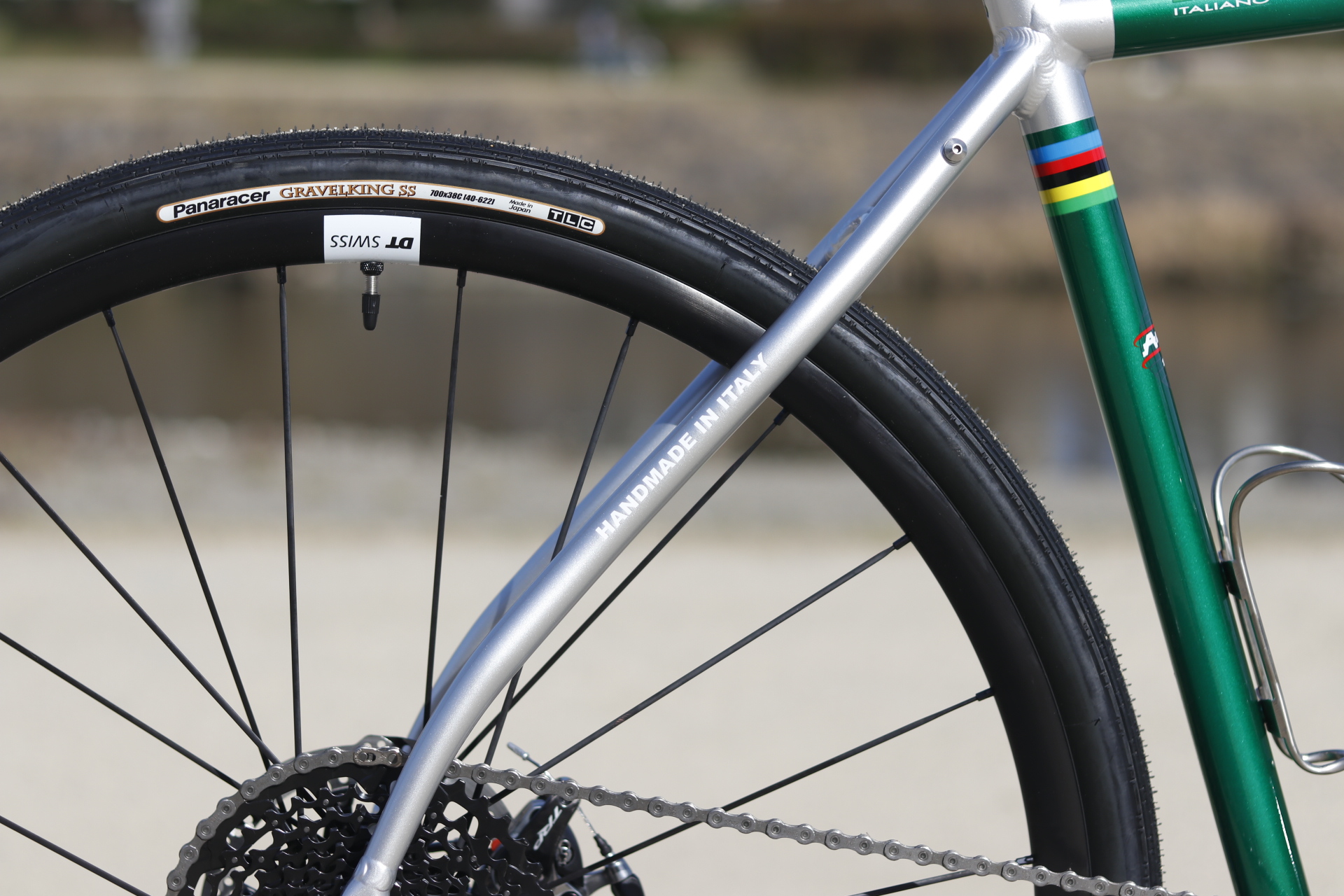 SRAM RIVAL 1x11SPEEDコンポをベースに、DT E1800ホイール、PANARACER GRAVELKING SS 700x38C、またkent eriksen titanium seatpostなどのこだわりパーツでアッセンブル。