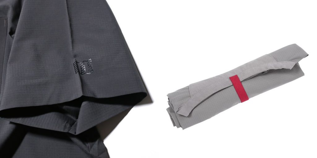 見た目だけでなく、吸水速乾素材による快適な着心地と首裏のバンドでコンパクトに畳めるナイスなアイデアも◎