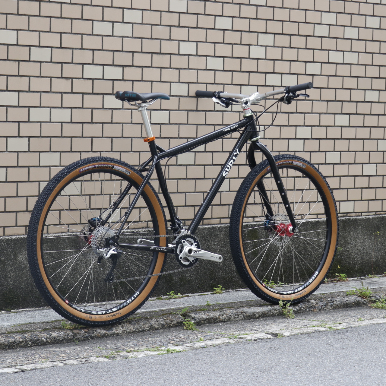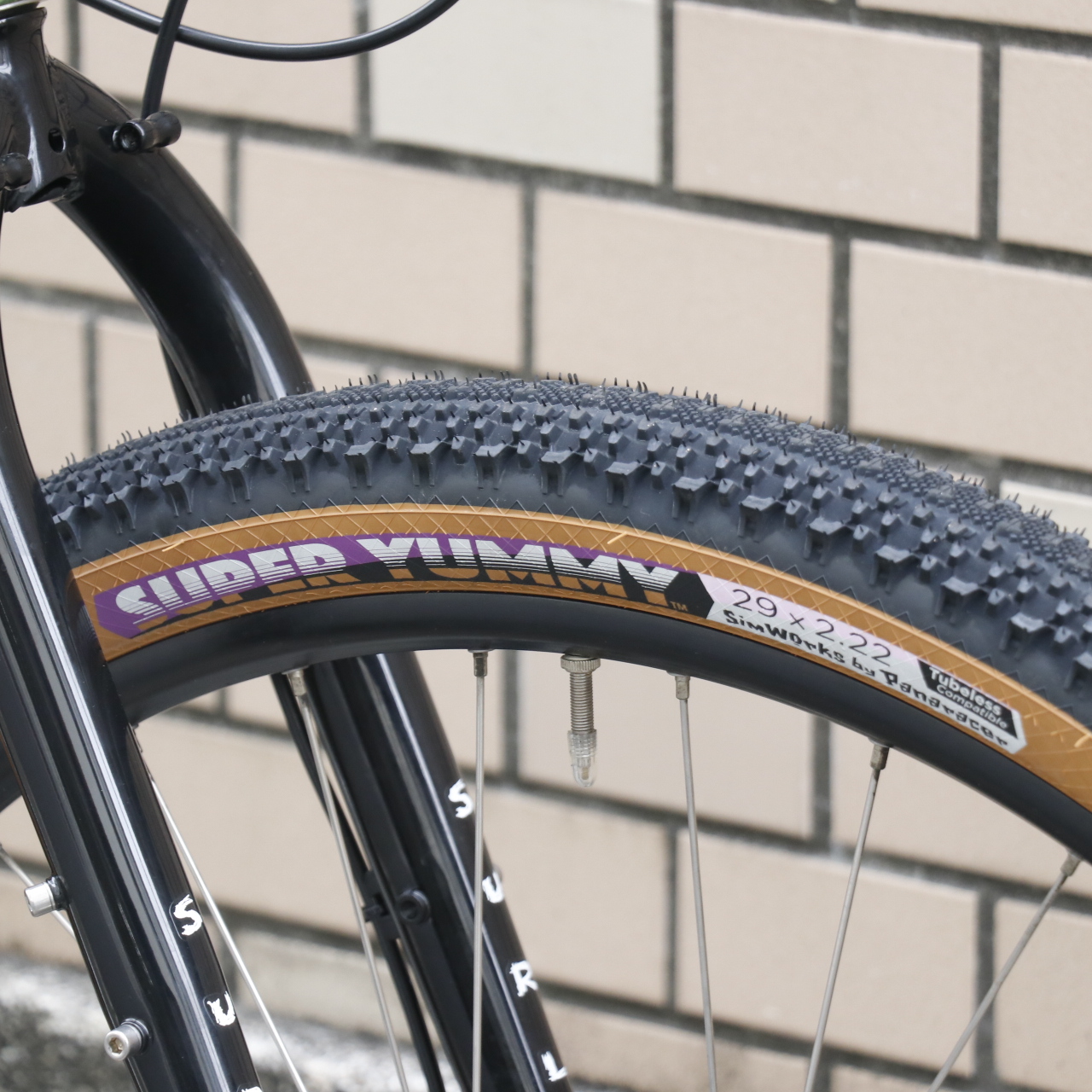 そしてフルリジットMTBでオフロード~キャンプ・街乗りなんかも楽しめるようにとタイヤはSIMWORKS x PanaracerのSuperYummyにカスタム!
