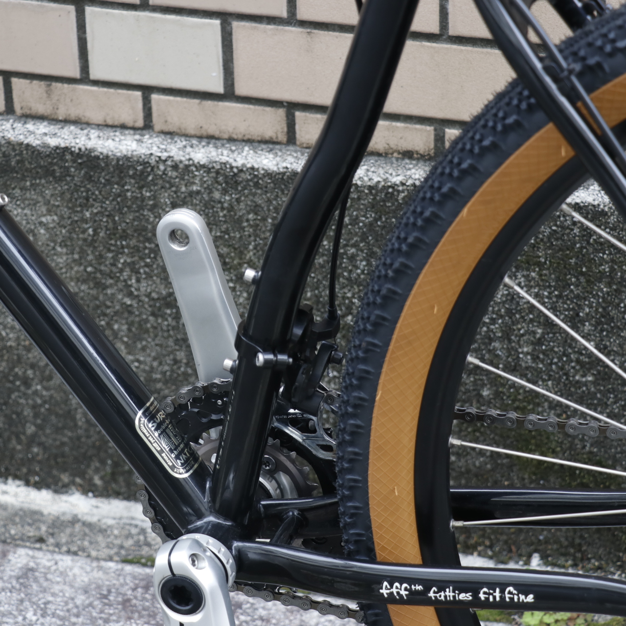 フレームデザインは一見シンプルなクロモリフレームながらも、前述のシートチューブの形状や各所の補強等々、激しい主張はなくとも一目でそれとわかる個性がありますね♬