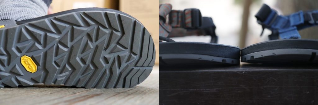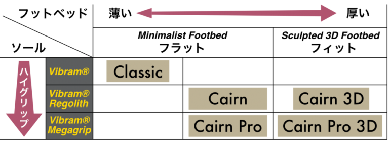 フラットなフットベッドを採用し、軽量でバイクパッキングツーリングにも相性良い「グラナイト・グリップ・フットベッド」*画像右