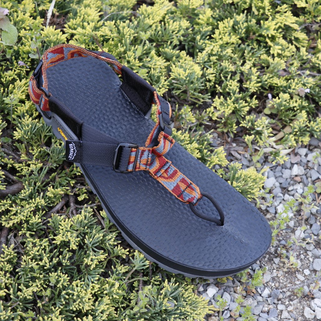 ベッドロックサンダルは山岳民族が伝統的に使用している革のヒモとソールで作られた鼻緒タイプのサンダルをベースに、その素材にナイロンストラップやプラスチックバックルを代用したとてもシンプルな作りとなっております。