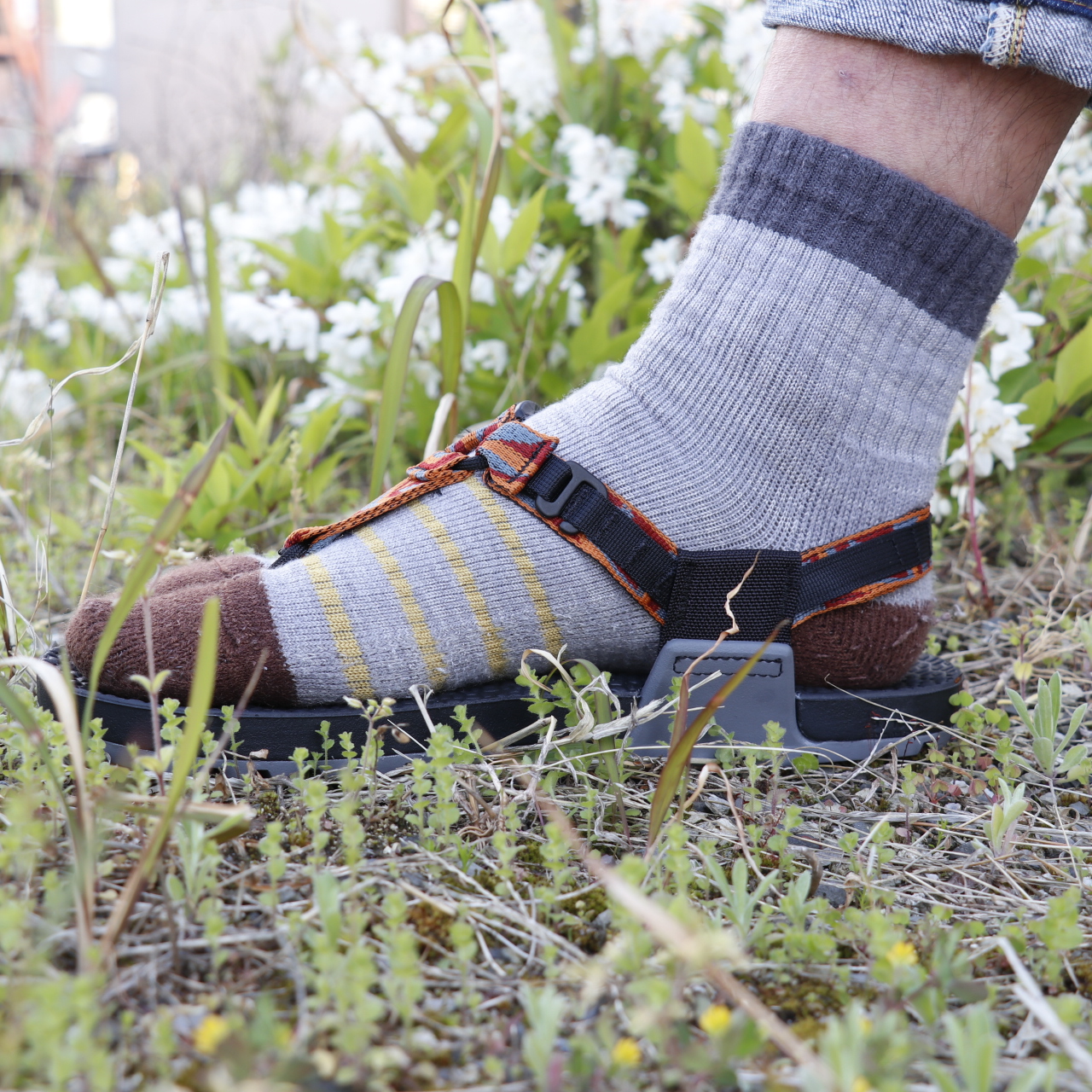 彼らの作るサンダルは、山岳民族が伝統的に使用している革のヒモとソールで作られたサンダルをベースに、その素材にナイロンストラップやプラスチックバックルを代用したとてもシンプルなものです。