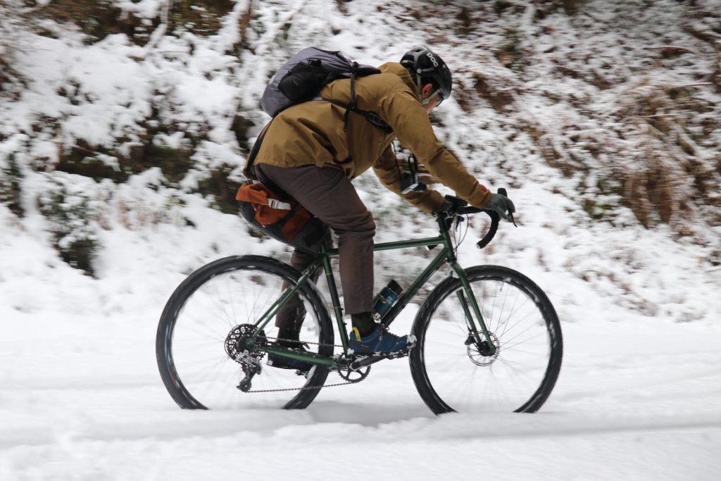 - フロントチェーンリングが小さいですが、SRAM XDR最大の恩恵であるリアスプロケットのトップギアが10Tなので、思いの外オンロードもスイスイと進んでくれます。