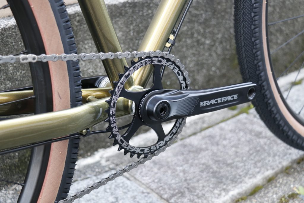- RaceFace Aeffectに36Tのチェーンリングを合わせたMTB仕様のクランクに、10-42Tのグラベルリアスプロケットを合わせたドライブトレイン。
