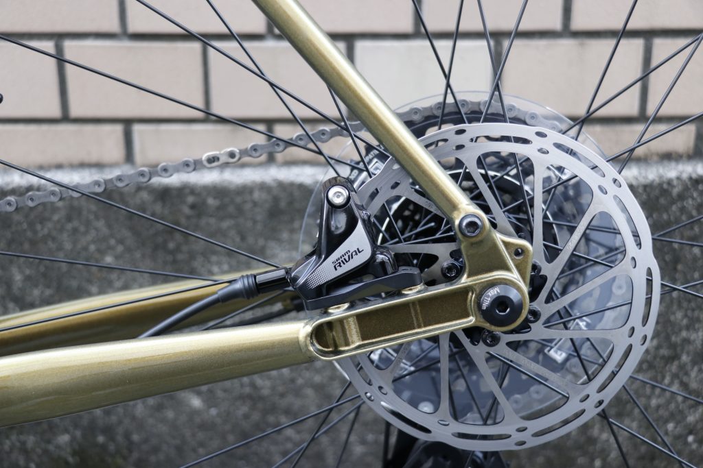 ブレーキはフラットマウントの油圧ディスクブレーキ。