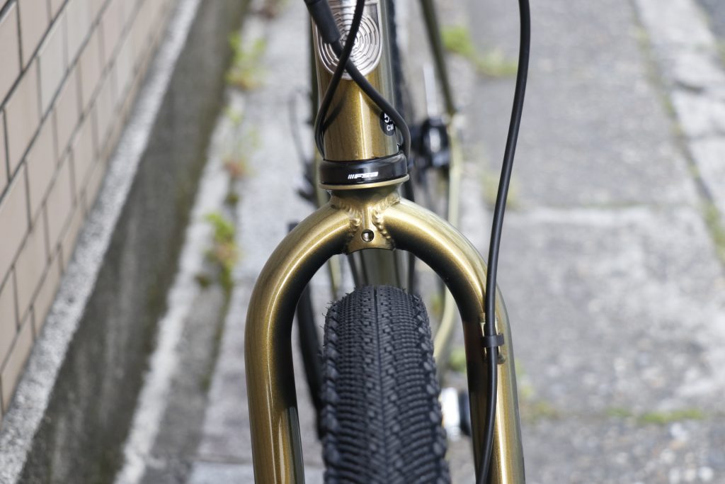 無骨なクロモリストレートフォークにはカーゴケージ用のトリプルダボ、フェンダー、キャリアとありとあらゆる積載に対応する豊富なアイレットが用意されています。